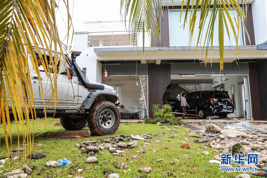 12月25日,救援人员在印尼万丹省丹戎勒松度假村将被海啸冲入建筑的车辆拖出。 印度尼西亚抗灾署25日通报说,印尼西部巽他海峡22日晚发生的海啸已造成429人遇难,另有超过1.6万人撤离。搜救工作正在紧张进行。 新华社记者 张可任 摄