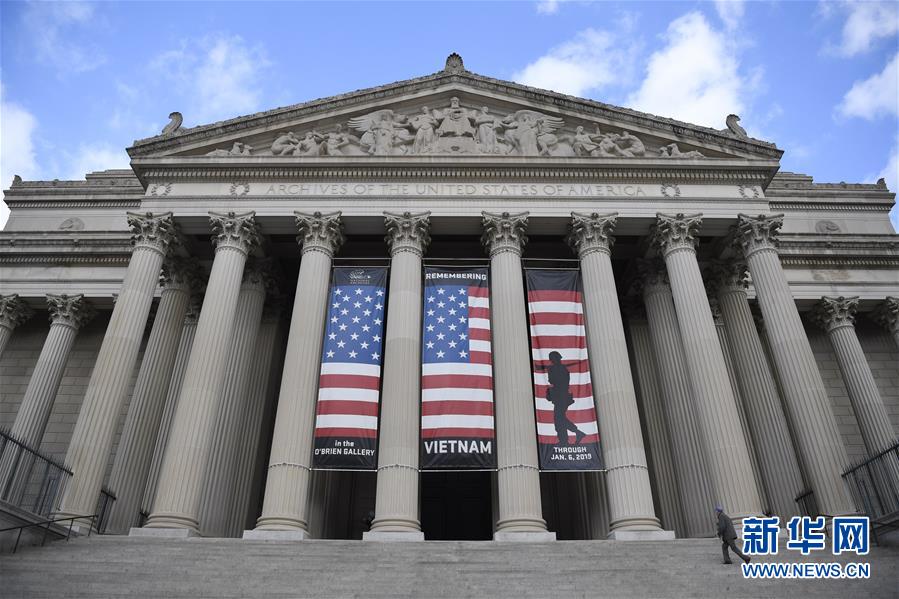 这是12月24日在美国首都华盛顿拍摄的美国国家档案馆大楼。 新华社记者 刘杰 摄
