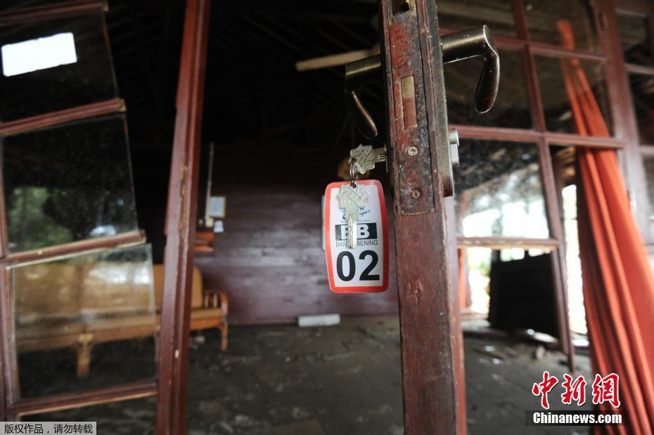 印尼度假海滩摧毁殆尽 废墟中钥匙还挂在门上