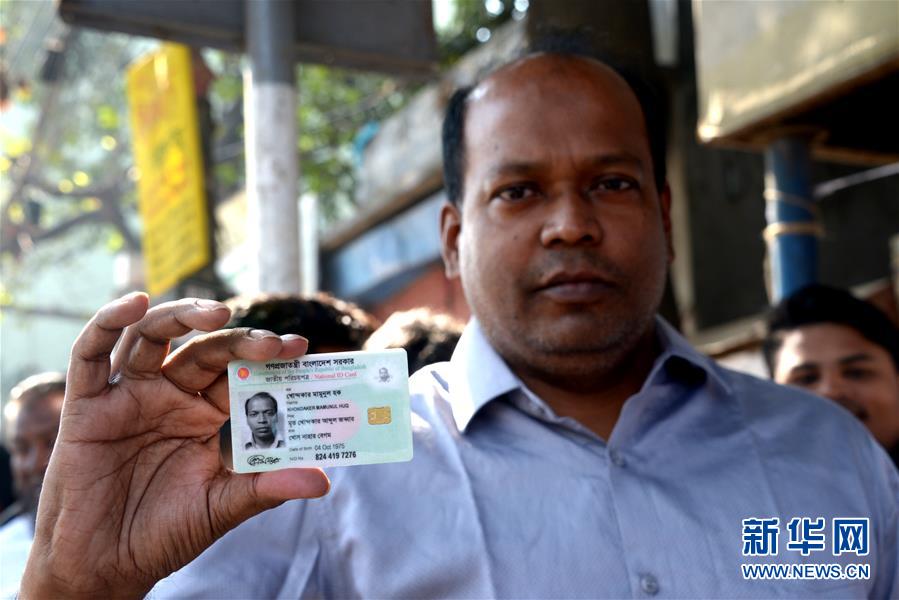 12月30日,在孟加拉国达卡,一名选民展示身份证件。 新华社发(萨利姆·礼萨摄)