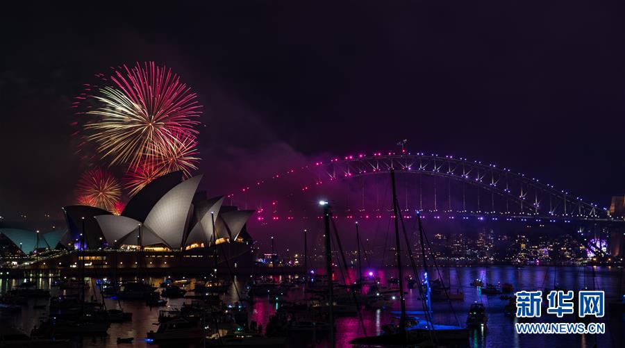 这是12月31日在澳大利亚悉尼海港大桥附近拍摄的焰火。2018年12月31日晚至2019年1月1日凌晨,澳大利亚悉尼举行跨年庆祝活动,迎接新年。新华社发(朱宏业 摄)
