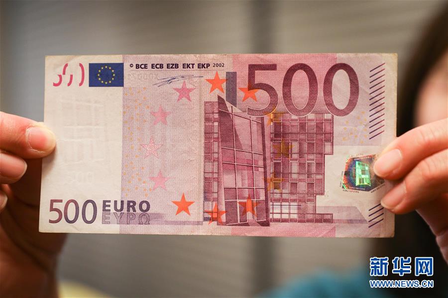 这是2018年12月28日在比利时布鲁塞尔拍摄的一张500欧面额的纸币。2019年1月1日是欧元诞生20周年纪念日。1999年1月1日,欧元在11个欧盟成员国正式启动,标志着欧元诞生。新华社记者 郑焕松 摄