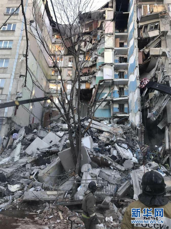 12月31日,在俄罗斯马格尼托哥尔斯克市,工作人员在爆炸现场作业。据俄罗斯紧急情况部31日发布的公告,当天凌晨车里雅宾斯克州一居民楼发生天然气爆炸,造成至少两人死亡。新华社/卫星社