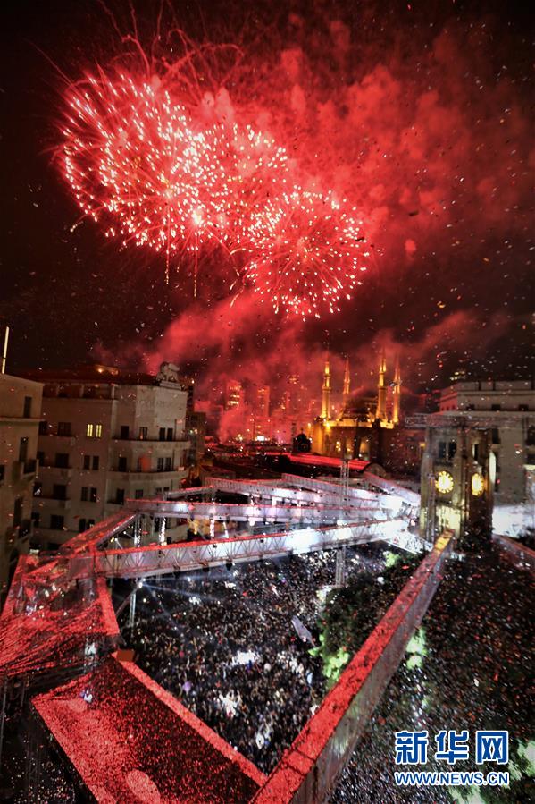 1月1日,人们在黎巴嫩首都贝鲁特参加跨年晚会。 新华社发(比拉尔·贾维希摄)