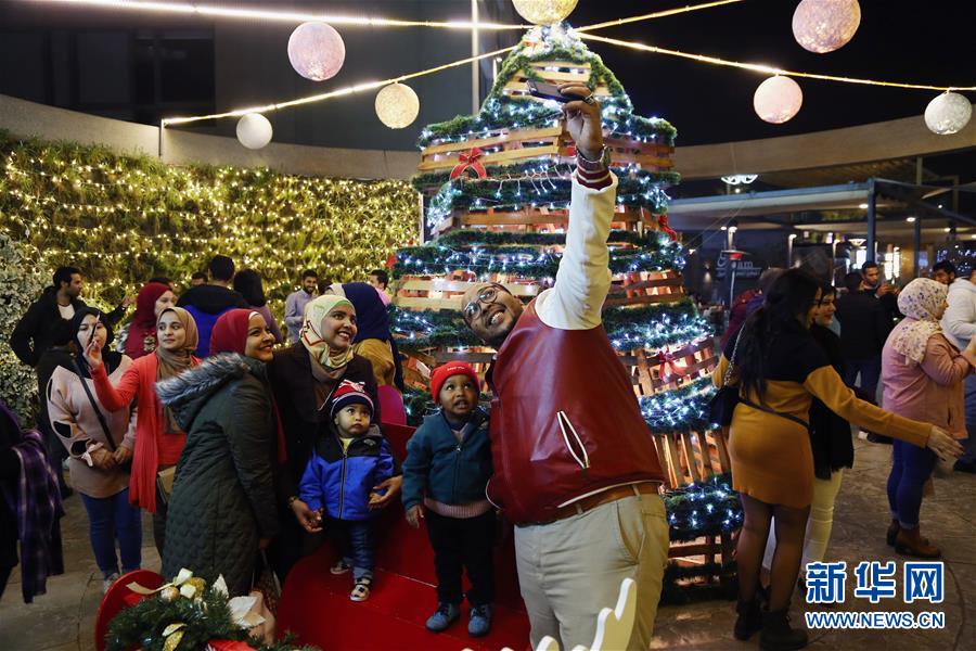 2018年12月31日,人们在埃及首都开罗的跨年活动上自拍。 新华社发(艾哈迈德·戈马摄)