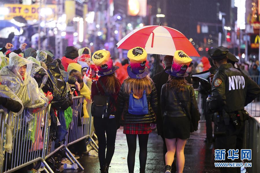12月31日,人们在美国纽约时报广场参加跨年庆祝活动。 当日,纽约时报广场举行一年一度的跨年庆祝活动。 新华社记者王迎摄