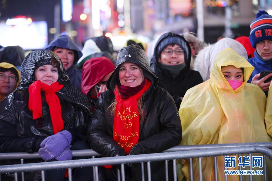 12月31日,人们在美国纽约时报广场参加跨年庆祝活动。 当日,纽约时报广场举行一年一度的跨年庆祝活动。 新华社记者王迎摄