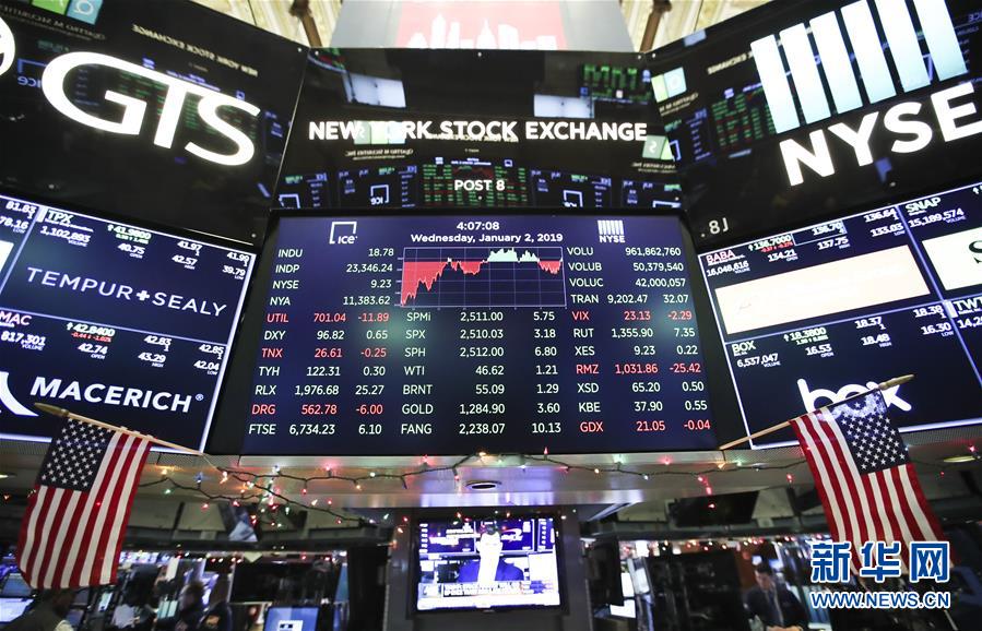 1月2日,美国纽约证券交易所的电子屏显示当天行情。 新华社记者王迎摄