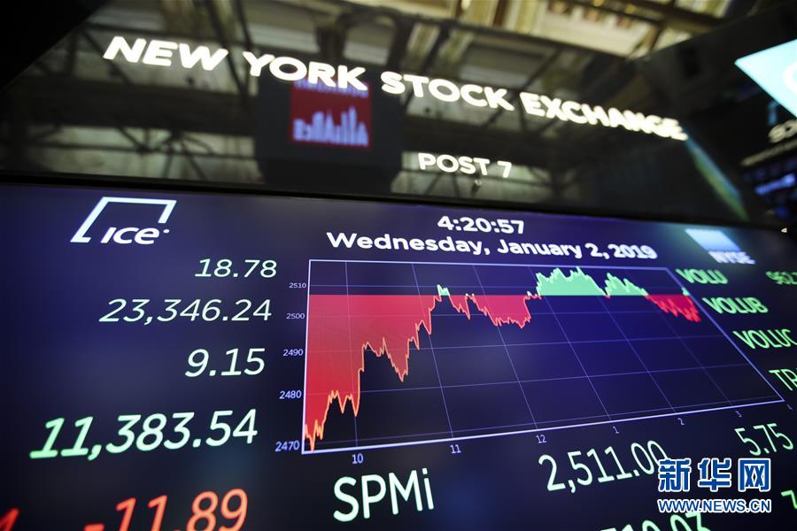 1月2日,美国纽约证券交易所的电子屏显示当天行情。 新华社记者王迎摄