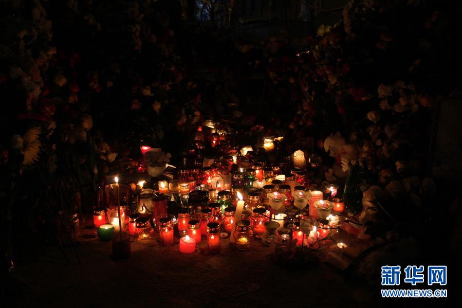 1月2日,在俄罗斯马格尼托哥尔斯克市,人们摆放鲜花和蜡烛悼念爆炸事故中的遇难者。 新华社/卫星社