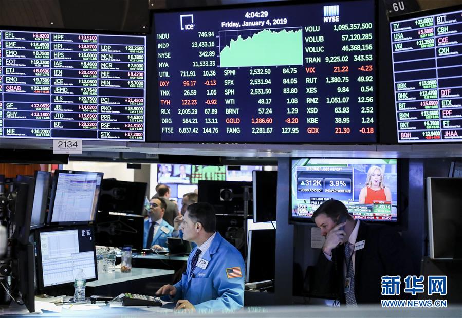 1月4日,交易员在美国纽约证券交易所工作。 新华社记者 王迎 摄