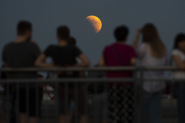 2018年7月27日,在波兰首都华沙,人们观赏月食。新华社发(亚普·阿林摄)
