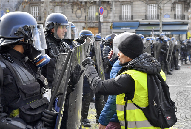 2018年12月8日,“黄马甲”示威者在法国巴黎与警方对峙。新华社记者陈益宸摄