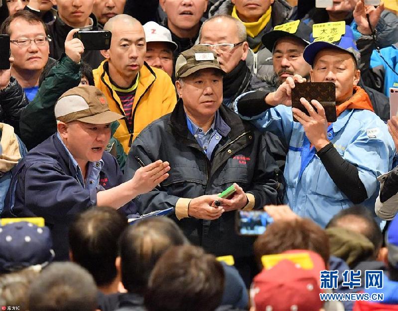 东京丰州市场新年首个交易日 巨型金枪鱼拍出3亿日元天价