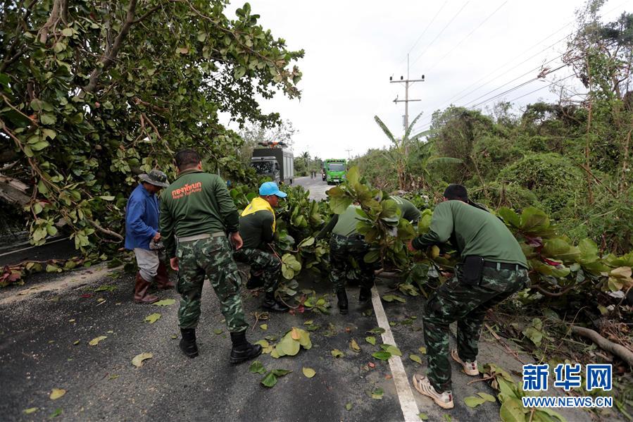 1月5日,在泰国那空是贪玛叻府,工作人员在清理道路。 新华社发