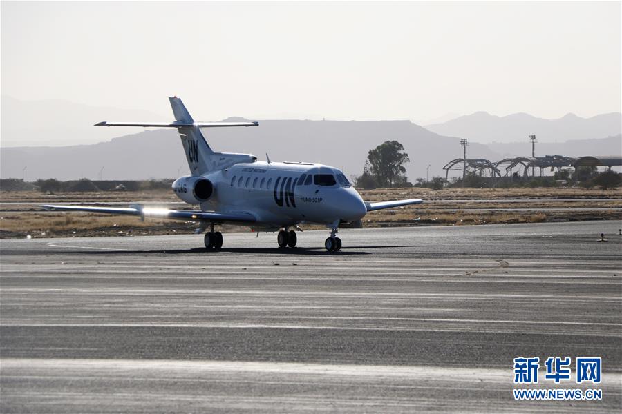 1月5日,联合国也门问题特使马丁·格里菲思乘坐的飞机降落在也门萨那国际机场。新华社发(穆罕默德摄)