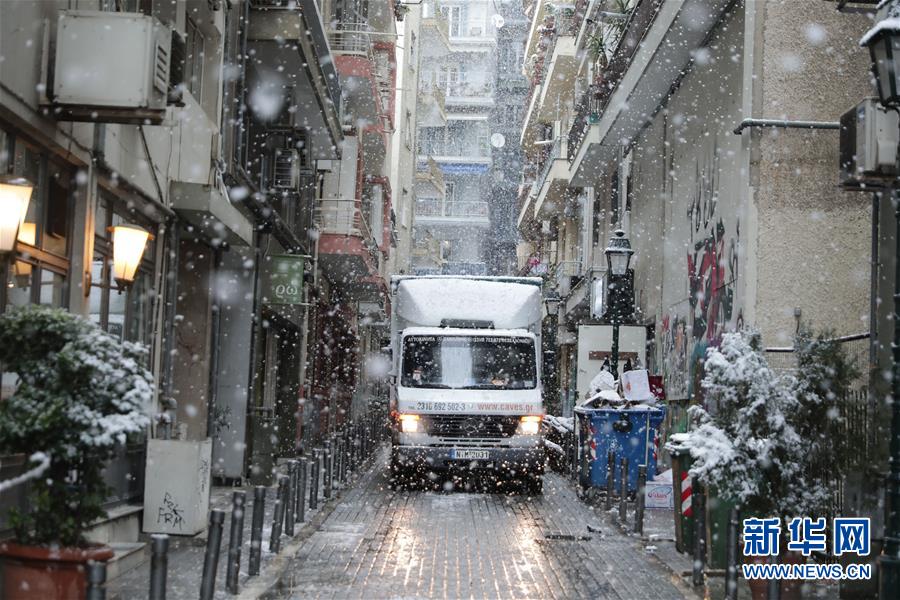 1月4日,在希腊塞萨洛尼基,一辆货车从飘雪的小巷驶过。 希腊消防部门6日表示,寒流带来的恶劣天气在希腊已造成3人死亡。新年伊始,寒流给希腊全国大部地区带来大风、降温和雨雪天气,中部和北部地区气温降至零度以下并出现强降雪天气,造成部分地区道路封闭、大面积航班延误及轮渡停运。 新华社发(莱夫特里斯·帕察里斯 摄)