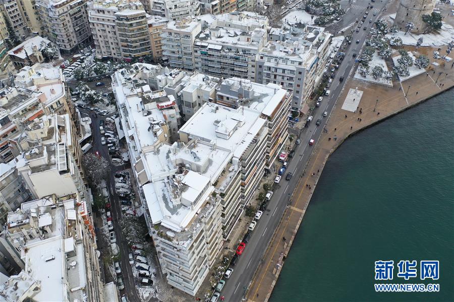 这是雪后的希腊塞萨洛尼基市中心景色(1月5日摄)。 希腊消防部门6日表示,寒流带来的恶劣天气在希腊已造成3人死亡。新年伊始,寒流给希腊全国大部地区带来大风、降温和雨雪天气,中部和北部地区气温降至零度以下并出现强降雪天气,造成部分地区道路封闭、大面积航班延误及轮渡停运。 新华社发(莱夫特里斯·帕察里斯 摄)