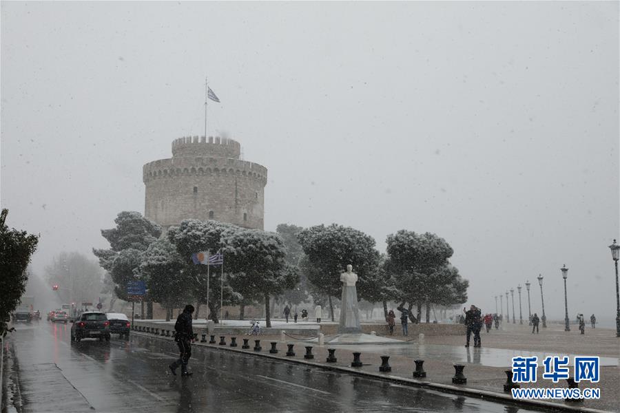 1月4日,希腊塞萨洛尼基街头大雪纷飞。 希腊消防部门6日表示,寒流带来的恶劣天气在希腊已造成3人死亡。新年伊始,寒流给希腊全国大部地区带来大风、降温和雨雪天气,中部和北部地区气温降至零度以下并出现强降雪天气,造成部分地区道路封闭、大面积航班延误及轮渡停运。 新华社发(莱夫特里斯·帕察里斯 摄)
