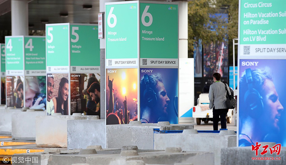 当地时间2019年1月6日,美国内华达州拉斯维加斯,一年一度的国际消费者电子产品展将在1月8日至11日期间召开,各项准备工作有序进行。Yonhap News Agency/视觉中国