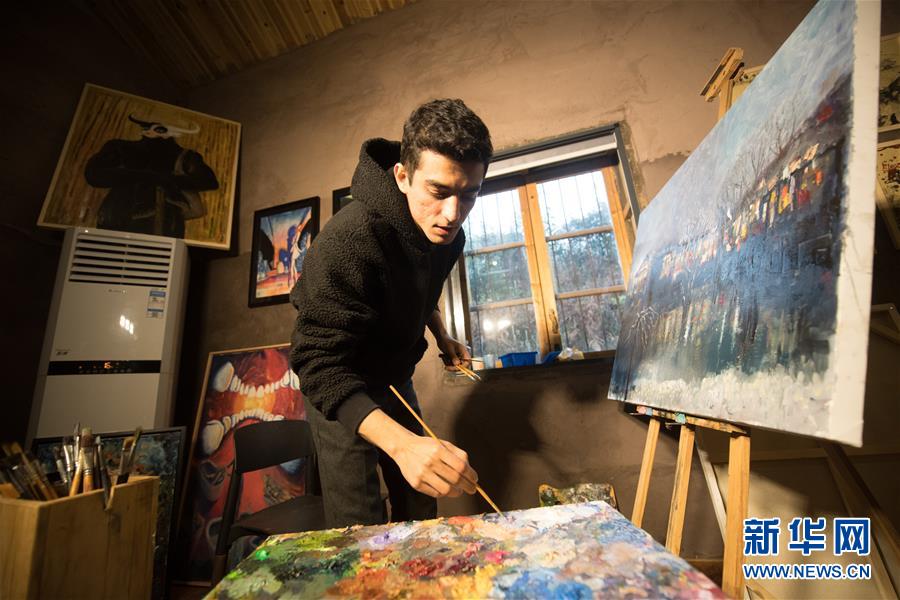 伊朗小伙迈赫拉兹·卡拉米,中文名叫旺仔,1993年出生于德黑兰,从小就对中国文化感兴趣。2012年旺仔来到上海读书,并逐渐萌发留下来的想法。2017年底,旺仔在浙江湖州市埭溪镇狮子山开设了自己的绘画工作室。 旺仔说中国的青山绿水让他着迷,他开始更多地转向风景画的创作。他的工作室由一名热爱艺术的民宿主免费提供场地,现在民宿工作人员和客人经常向他学画。旺仔还结识了一个中国女友,经常在女友设计的首饰上涂抹自己的灵感。 旺仔用汉语说,他打算在中国继续创作、结婚生子,希望能成为一个独立艺术家。