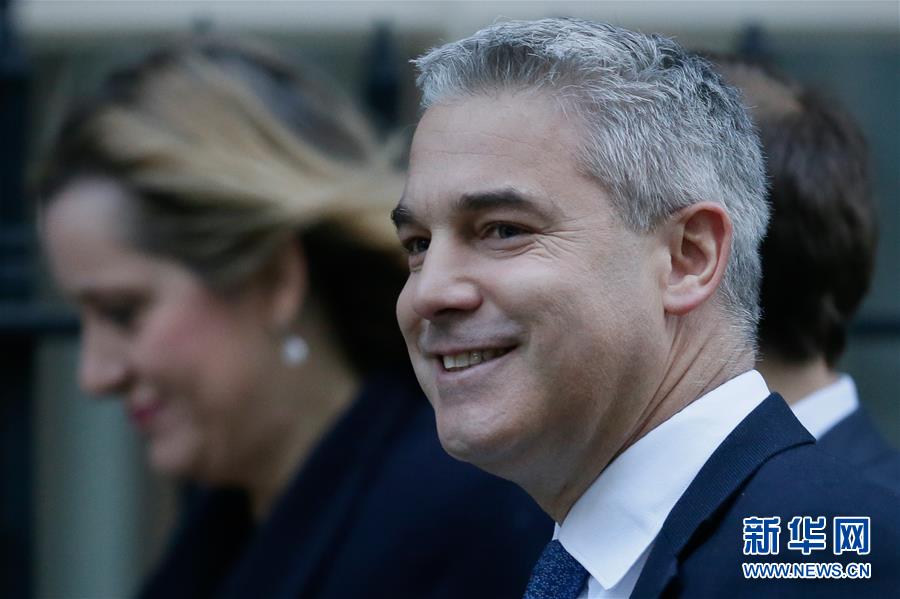 1月8日,英国“脱欧”事务大臣斯蒂芬·巴克利(右)参加完内阁会议后离开伦敦唐宁街10号。 英国首相府8日确认,一度推迟的“脱欧”协议投票表决将于15日在议会下院举行。 新华社发(蒂姆·爱尔兰摄)