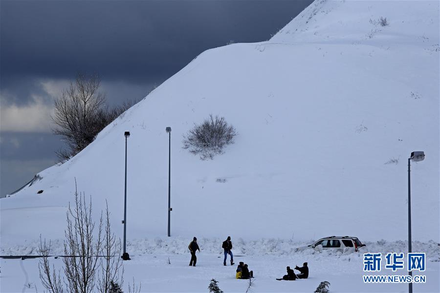 1月9日,在黎巴嫩首都贝鲁特以东的山区,人们在雪地上玩耍。 黎巴嫩自6日起遭遇极端暴风雨雪天气。统计数据显示,黎巴嫩全国各地已报告581起医疗急救事故和703次疏散和转移行动。 新华社发(比拉尔·贾维希 摄)