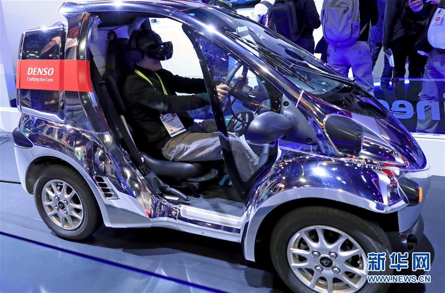 1月10日,在美国拉斯维加斯,一名参观者在一辆小型车内体验VR技术。 2019年美国拉斯维加斯消费电子展(CES)8日正式开幕,来自150多个国家和地区的约4500家企业参展。 新华社记者李颖摄