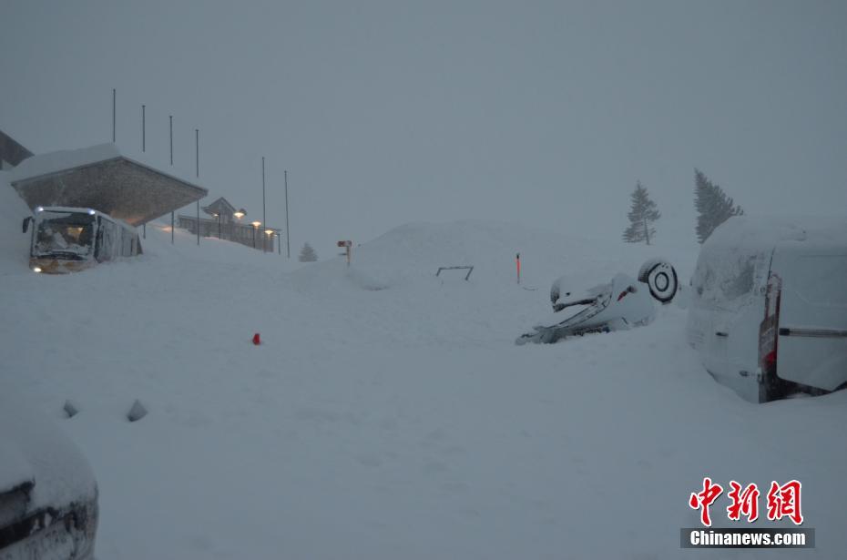 当地时间2019年1月10日,瑞士洛桑,当地遭遇连续降雪,积雪遍地。