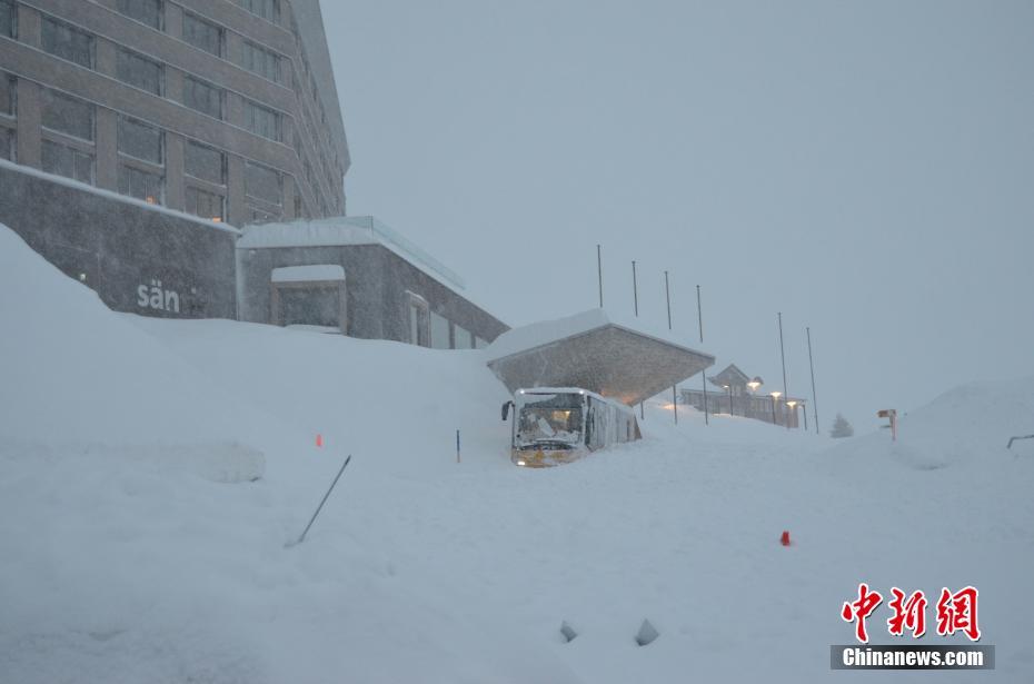 当地时间2019年1月10日,瑞士洛桑,当地遭遇连续降雪,积雪遍地。