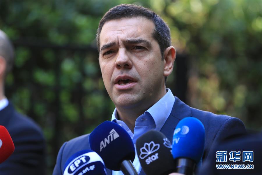 1月13日,希腊总理齐普拉斯在雅典对媒体发表声明。 希腊国防部长坎梅诺斯13日宣布,由于对马其顿更改国名协议持反对意见,他将辞去国防部长一职,由他领导的独立希腊人党将退出联合政府。希腊总理齐普拉斯随后发表声明说,接受坎梅诺斯的辞职,也将接受来自独立希腊人党的其他政府部长的辞职。 新华社发(马里奥斯·罗洛斯摄)