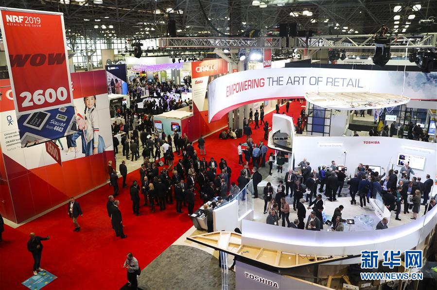 1月13日,在美国纽约,人们在美国全国零售商联合会年度大会上参观。 当日,为期三天的美国全国零售商联合会年度大会开幕,来自世界各地的792家展商展出最新的零售业解决方案、硬件设备和发展趋势等,吸引超过3万名参观者和专业人士参会。 新华社记者 王迎 摄