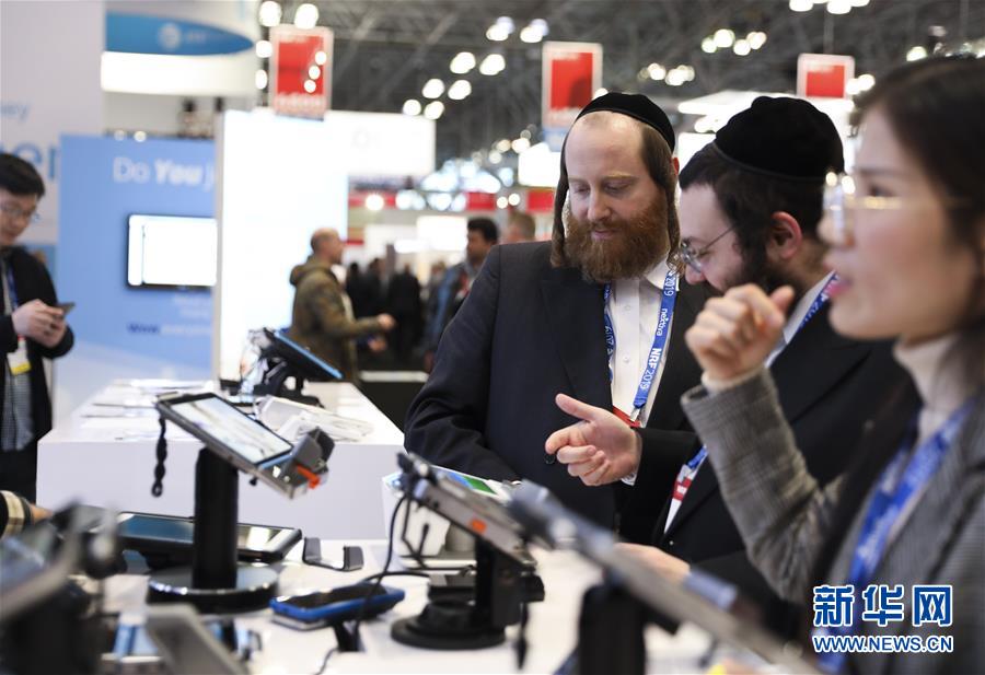 1月13日,在美国纽约,参观者在美国全国零售商联合会年度大会上观看电子收银设备。 当日,为期三天的美国全国零售商联合会年度大会开幕,来自世界各地的792家展商展出最新的零售业解决方案、硬件设备和发展趋势等,吸引超过3万名参观者和专业人士参会。 新华社记者 王迎 摄