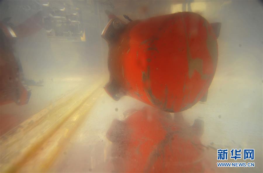 这是1月14日在印度尼西亚加拉璜拍摄的失事客机的第二个黑匣子——驾驶舱话音记录器。新华社发(祖卡南摄)