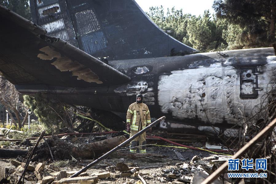 1月14日,在伊朗首都德黑兰附近,救援人员在坠机现场工作。新华社发(艾哈迈德·哈拉比萨兹摄)