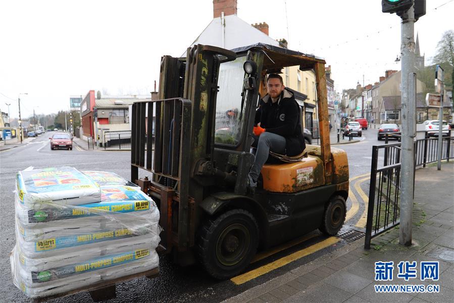 1月10日,在爱尔兰克朗斯镇,夏兰·摩根在自家经营的杂货店外卸货。新华社发