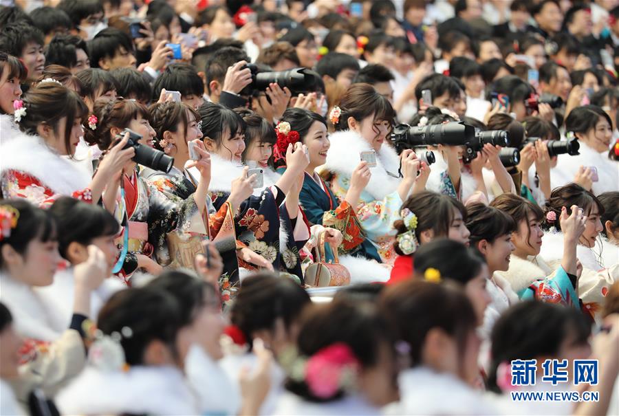 1月14日,在日本千叶县的东京迪士尼乐园,身着盛装的年轻人参加“成人礼”。新华社记者杜潇逸摄