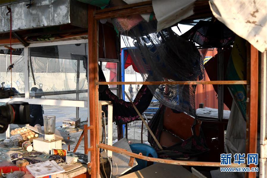 这是1月15日在阿富汗首都喀布尔拍摄的被爆炸袭击波及的商铺。