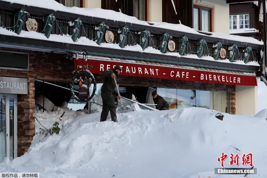 近日,欧洲阿尔卑斯地区多国暴雪成灾,造成道路交通受阻,多地雪崩风险增加。图为奥地利一旅馆遭雪崩侵袭。