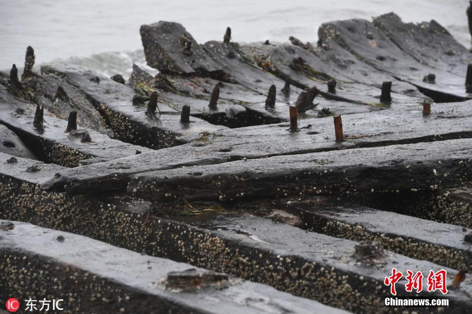 受风暴潮连日冲刷 德国海滩一艘18世纪沉船重见天日