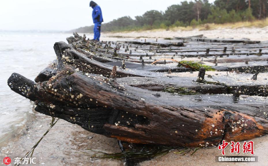 受风暴潮连日冲刷 德国海滩一艘18世纪沉船重见天日