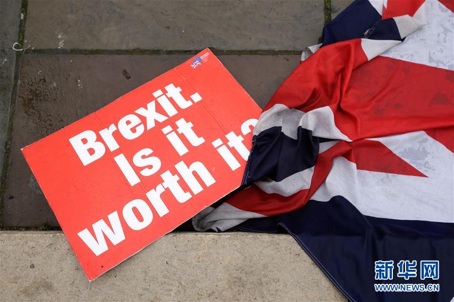 1月16日,在英国伦敦,一块反对英国“脱欧”的标语牌摆放在议会大厦外的地面上。 英国议会下院15日投票否决了英国政府此前与欧盟达成的“脱欧”协议。英国反对党工党领导人科尔宾向议会下院提起对政府的不信任动议。英国议会将于16日对这份动议进行辩论和投票。 新华社发(蒂姆·爱尔兰摄)