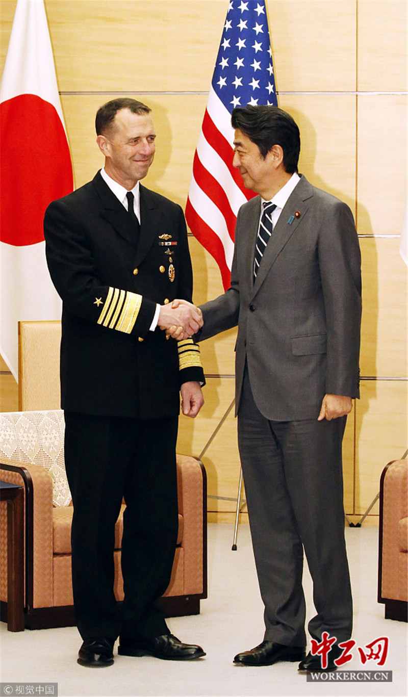当地时间2019年1月17日,日本东京,日本首相安倍晋三会见美国海军作战部长理查森上将。