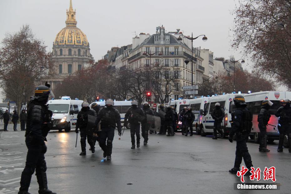 当地时间1月19日,巴黎遭遇自2018年11月以来的第十轮示威。大批警察在荣军院周围严密戒备。中新社记者 李洋 摄