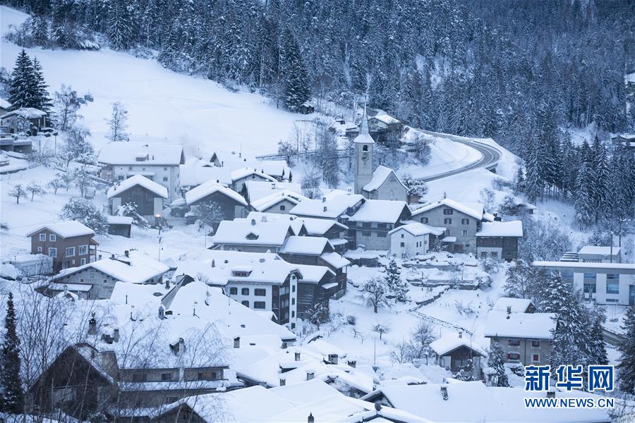 这是1月20日拍摄的瑞士达沃斯附近的菲利苏尔村清晨的景色。 一年一度的世界经济论坛年会22日将在瑞士小镇达沃斯正式拉开帷幕。 新华社记者 徐金泉 摄