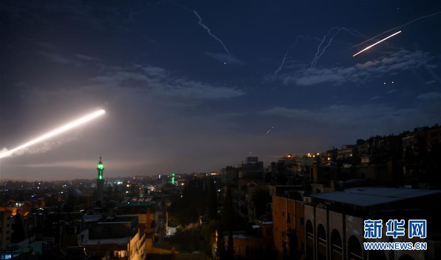 1月21日凌晨,在叙利亚大马士革,叙防空系统对来袭导弹实施拦截。 新华社发(阿马尔摄)