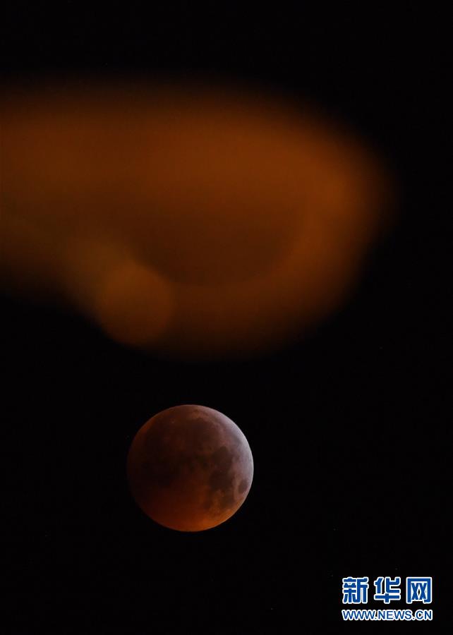 这是1月21日在西班牙首都马德里拍摄的“超级红月亮”。 1月21日迎来2019年第一个月圆之夜,新年首次“超级月亮”现身天宇。巧合的是,当日还发生一场“月全食”奇观。因此,这一天的月亮也被称为“超级红月亮”。 新华社记者郭求达摄