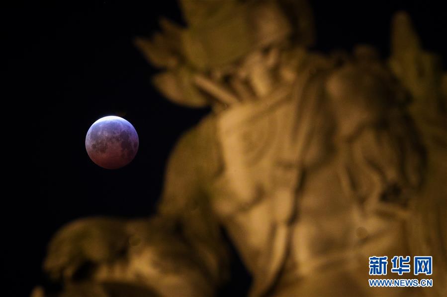 这是1月21日在比利时首都布鲁塞尔拍摄的“超级红月亮”。 1月21日迎来2019年第一个月圆之夜,新年首次“超级月亮”现身天宇。巧合的是,当日还发生一场“月全食”奇观。因此,这一天的月亮也被称为“超级红月亮”。 新华社记者郑焕松摄