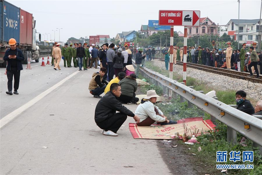 1月21日,在越南北部海阳省,人们聚集在交通事故现场周围。 越南北部海阳省21日下午发生一起严重交通事故,造成至少9人死亡、4人受伤。 新华社/越通社