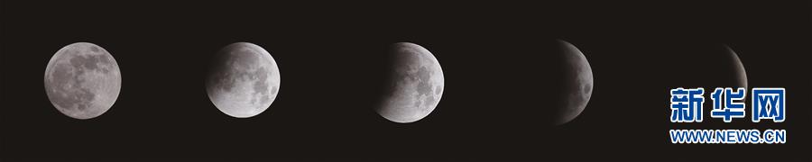 这是1月21日凌晨在德国法兰克福拍摄的月全食过程 (拼版照片)。新华社记者逯阳摄
